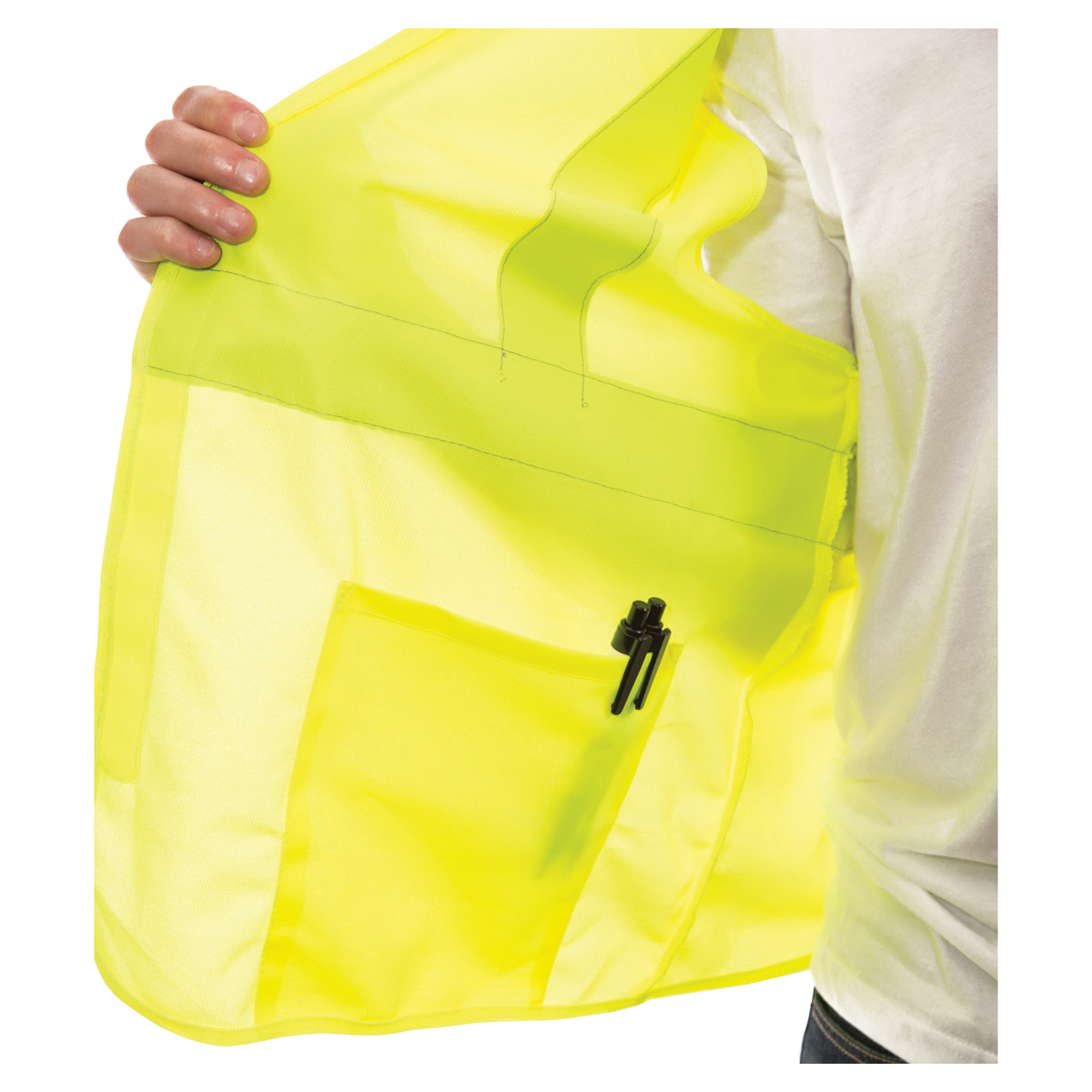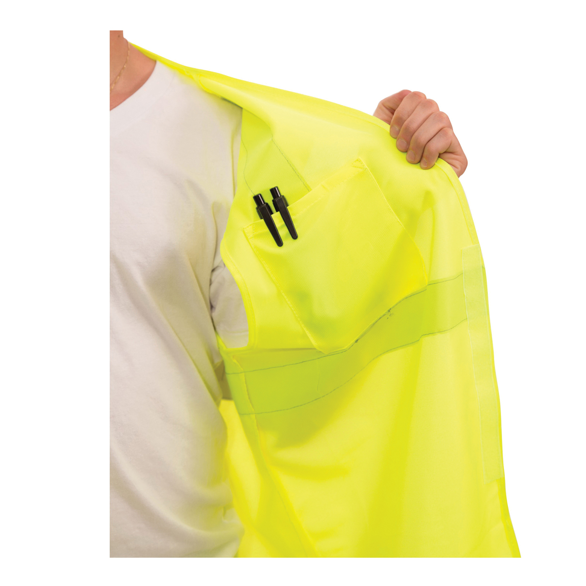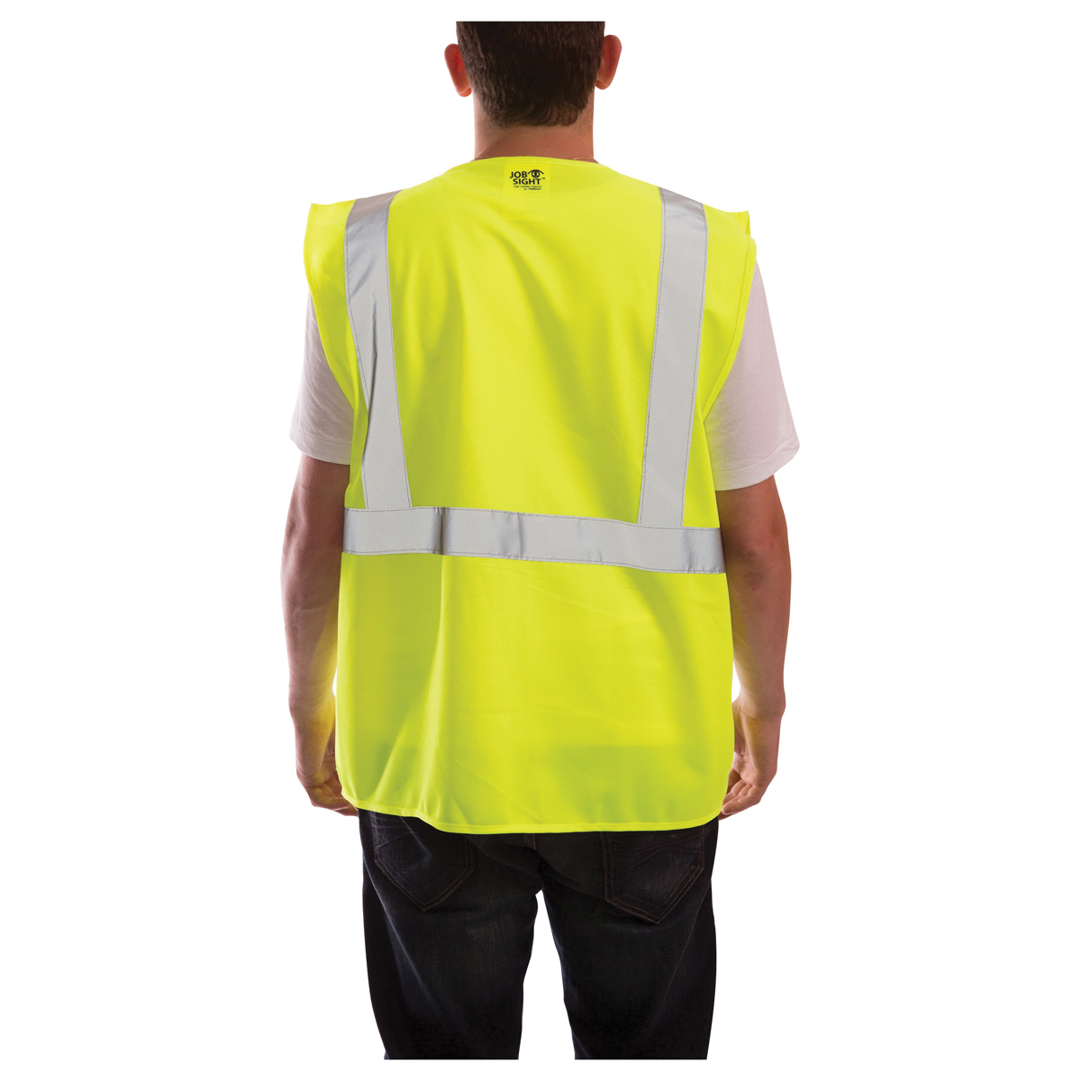 Job Sight Solid Safety Vest, L/XL, Gender: Men's, Fits to Chest Size: 55 in, Number of Pockets: 2, Hook-and-Loop Closure, 100% Polyester Mesh, Fluorescent Green/Yellow, 28-1/2 in L