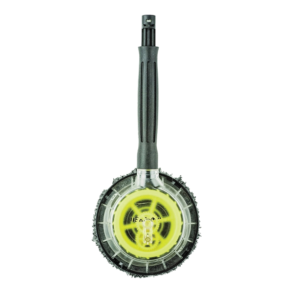 Use the water flow from your pressure washer to drive the bristles on this handy rotating wash brush. Reduce the time and effort required to loosen bugs, mud and other debris from vehicles, patio furniture and more. The brush auto-matically dispenses soap from the pressure washer, making it even more convenient to clean with detergents. Includes adapters to work with Karcher electric pressure washers and gas pressure washers, as well as other major brands of pressure washers with quick-connect fittings.