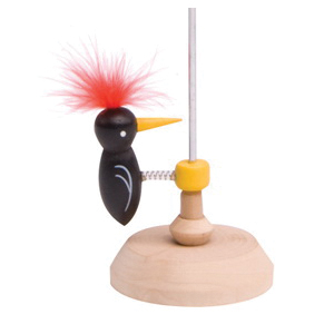 Start him at the top and let him go. Our adorable woodpecker toy adds entertainment to any desk, table or counter. Watch his feathers fly as he taps his way to the bottom.