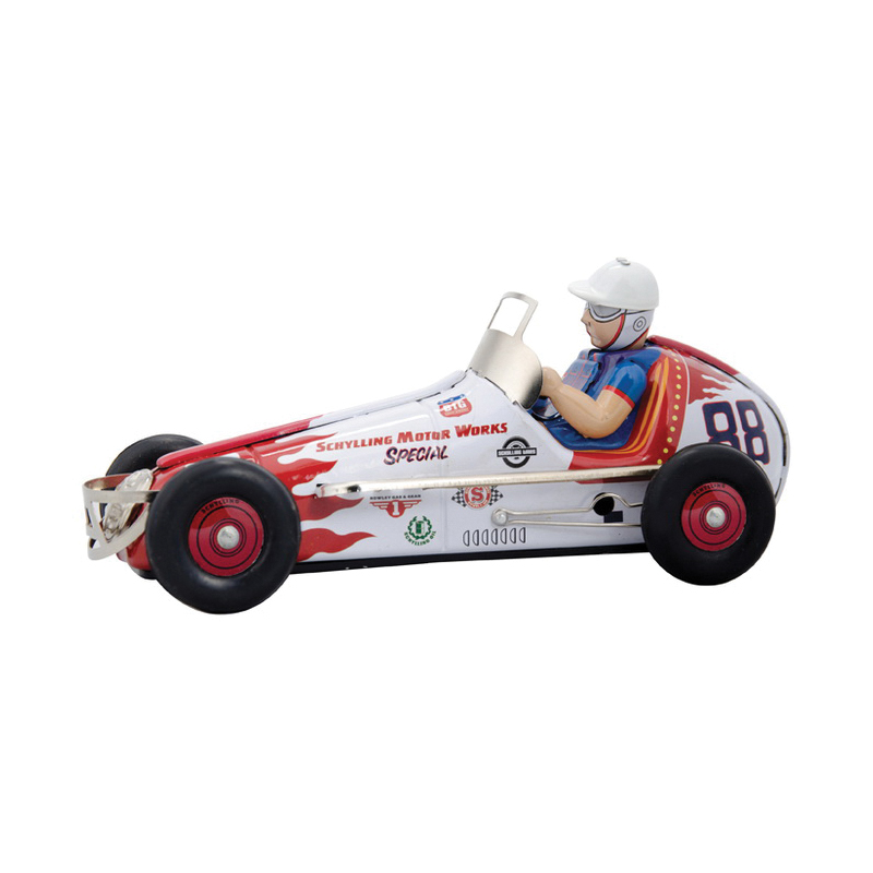 This multi-function wind up race car is a marvel of engineering. Fully loaded with all metal features, this racer has wheels that turn, chrome-plated bumpers and rubber tires. You don't want to miss out on this amazing vehicle.