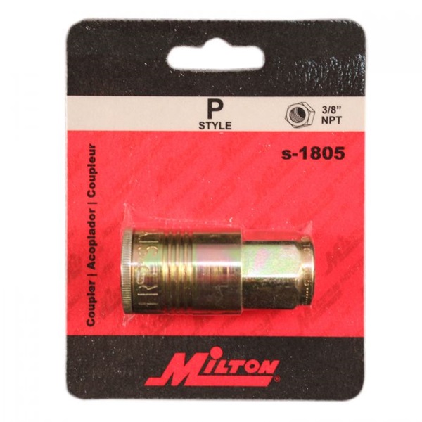 3/8 in FNPT P-style couplers have eight locking balls for better retention of plug. Has a Maximum of 300 psi with a basic air flow of 1/2 in. Heavy-duty steel body has a Buna-N seal.