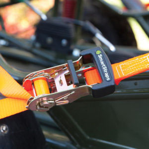 SmartStrap Padded Tie-Down, 1000 lb Weight, Breaking Strength: 3000 lb, End Fitting Type: S-Hook, End Fitting Material: Steel, Adjustment Type: Ratchet, Steel, Orange, 14 ft L, 1 in W, Suitable for: Heavier Loads Often Hauled in a Large Pick-Up Truck or on a Medium Trailer - Motorcycles, Boats, Appliances