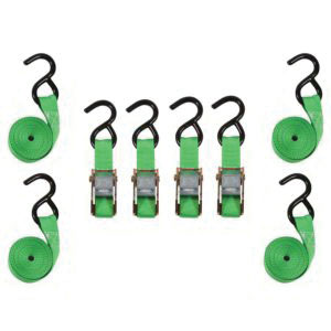 SmartStrap Tie-Down, 300 lb Weight, Breaking Strength: 900 lb, End Fitting Type: S-Hook, End Fitting Material: Steel, Adjustment Type: Cam Buckle, Steel, Green, 10 ft L, 1 in W, Suitable for: Lighter Loads Often Hauled in a Pick-Up Truck or on a Small Trailer - Dirt Bikes, ATV's, Lawn Tractors