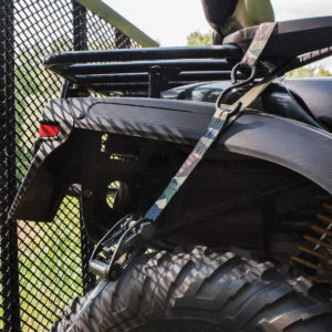 SmartStrap RachetX Tie-Down, 500 lb Weight, Breaking Strength: 1500 lb, End Fitting Type: S-Hook, End Fitting Material: Steel, Adjustment Type: Ratchet, Steel, 14 ft L, 1 in W, Suitable for: Lighter Loads Often Hauled in a Pick-Up Truck or on a Small Trailer - Dirt Bikes, ATV's, Lawn Tractors, Includes: Protective Hex Caps, Soft Tie Loops