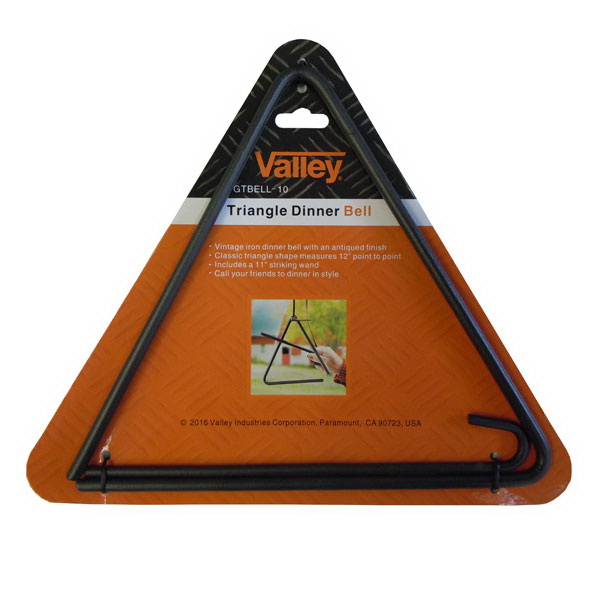 Valley Dinner Bell, Vintage, Specifications: Triangular Shape, 12 in, Iron, Antiqued, Black, Includes: (1) 11 in Striking Wand