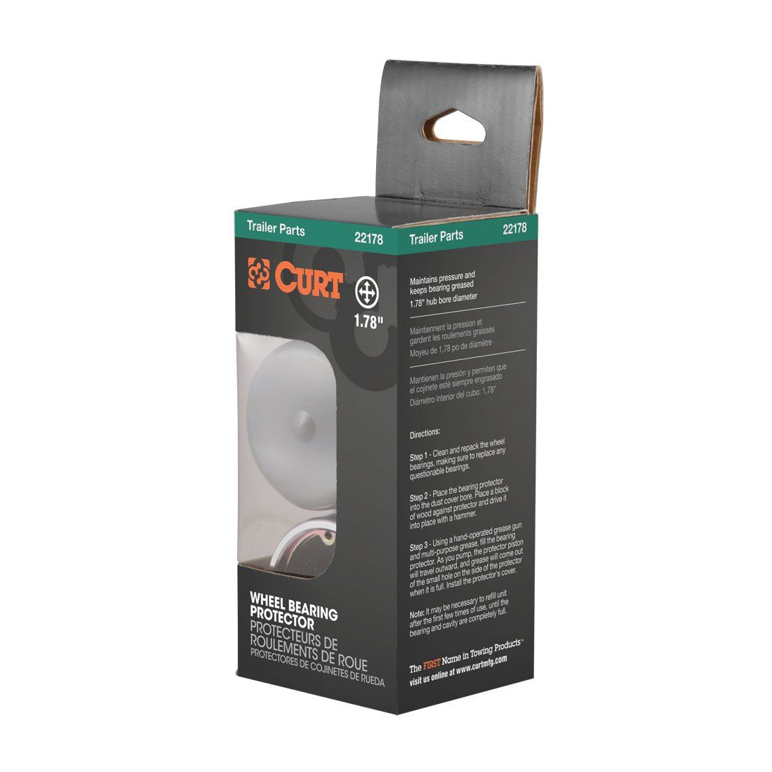 Keeping the wheels of your trailer well lubricated is an important part of towing responsibly. It may not be on the forefront of your mind, but a trailer's wheels need to be cared for just like the wheels of your vehicle. Curt offers an easy way to give your trailer wheels proper care to help maximize the life and performance of your trailer. Acting like a cap for your wheel bearings, Curt bearing protectors offer two essential benefits for your trailer. First, they provide a reservoir of grease to lubricate your wheels and keep them turning smoothly mile after mile. Second, they cover the bearings so that mud, rain, road grime and other threats to their function are kept out. A bad wheel bearing can start out as a mere annoyance, but before long, it can turn into a huge problem. With Curt wheel bearing protectors, you can ensure that your wheels keep turning, quiet as a mouse. Our bearing protectors also come with plastic dust covers that fit over the end of the protector for even more defense against the elements. Choose a set of Curt bearing protectors for your trailer wheels and get the most out of your towing. This set of bearing protectors features a 1.78 in hub diameter.