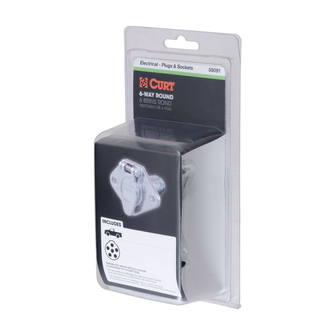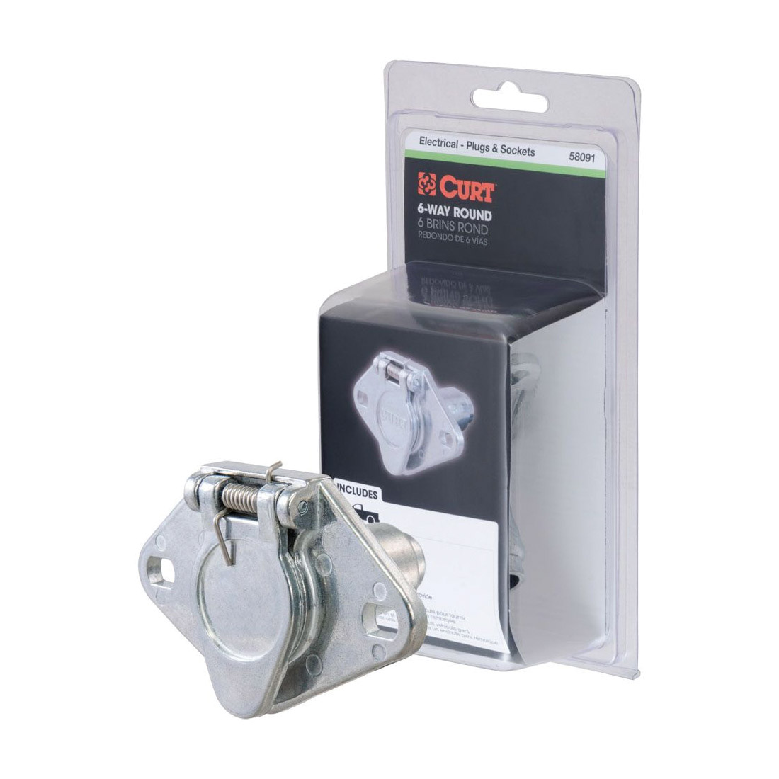 Like trailer hitches and ball mounts, electrical connectors range all over the board in shape, size and capability, but no matter what your trailer's electrical functions are, you need a solid connection to keep the power flowing and ensure safety on the road. Curt electrical connectors are designed and manufactured to give you a reliable connection every time you plug in your trailer. This six way round connector is designed to supply power for tail lights, turn signals, electric trailer brakes, a 12 V battery and brake lights, as well as a ground connection. It features durable die cast metal construction and comes with a spring loaded steel cover to resist damage from dust and water. This six way round connector is a female end socket, specifically designed for the vehicle side of the connection. Six way round connectors are commonly used on livestock trailers, boat trailers and utility trailers.