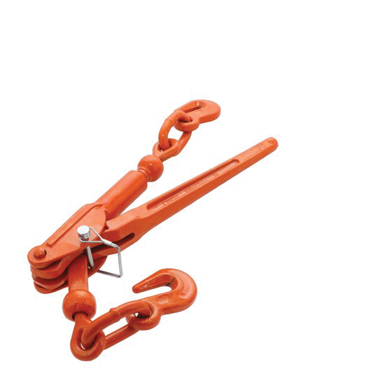 As the name implies, our special adjustable lever style chain binder is designed with a built-in adjustment feature for a safe, quick and easy solution to attain proper tension for cargo with a working load limit of 5400 lb/2450 kg that has been tied down with 5/16 in to 3/8 in sized chains. Simply rotate the adjustable end and extend or retract it to achieve the length you want. No more bouncing back and forth from one link to another trying to find a secure fit. The Adjustable lever style chain binder also comes equipped with a lock pin, making it one of the safest binders in the cargo control industry. The formed steel handle offers optimal strength and leverage so you can securely tighten down or easily release your load with a firm push. We recommend never using a cheater bar or other handle extenders to tension the load as this could potentially cause serious or fatal injuries and/or cargo damage. The 3/8 in clevis grab hooks have been engineered to provide you with the high-quality durability you need to secure your cargo. These hooks are simple, reliable and have been coated in a zinc plated finish to protect them against corrosion.