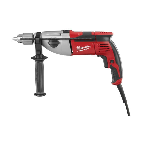 • Two-speed gear box for selecting the correct drilling speed for the material and accessory