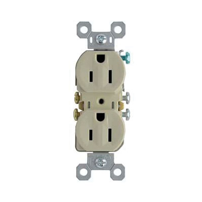 Pass & Seymour TradeMaster 3232TRI Duplex Receptacle Outlet, 2 -Pole, 15 A, 125 V, Side Wiring, NEMA: 5-15R, Ivory