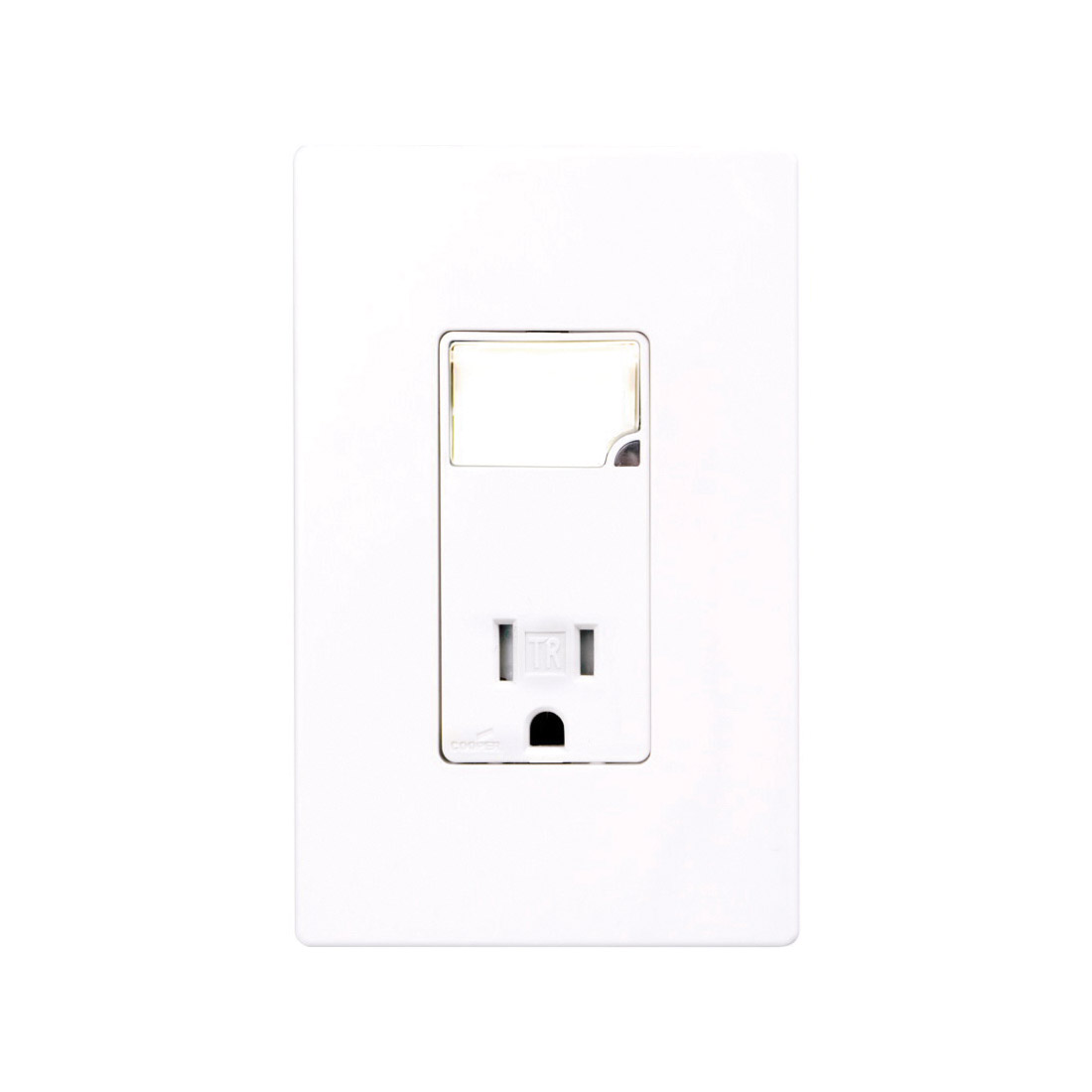 Eaton TR7735W-BOX Nightlight and Combination Receptacle, 2-Pole, 120/277 V, 15 A, Back and Side Wiring