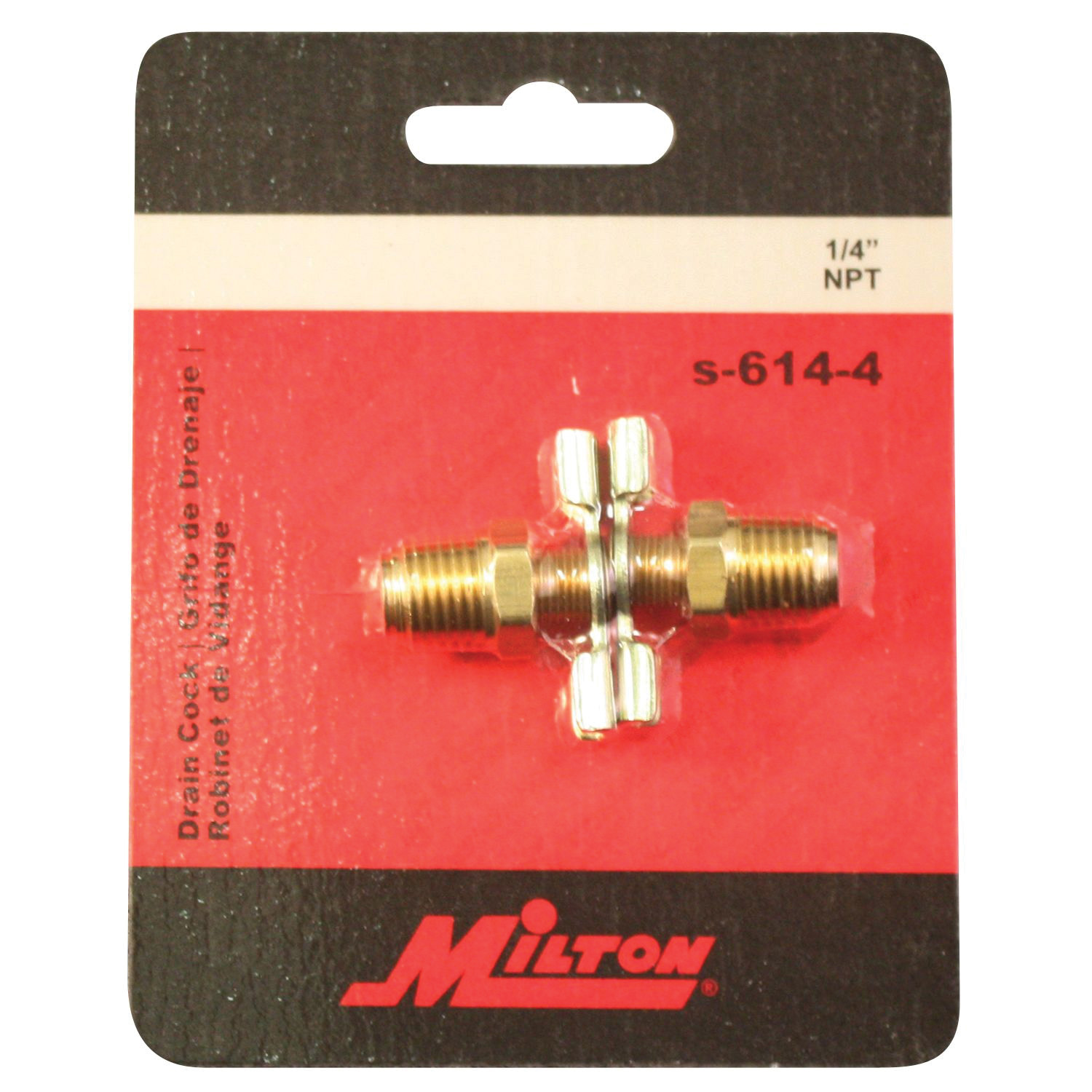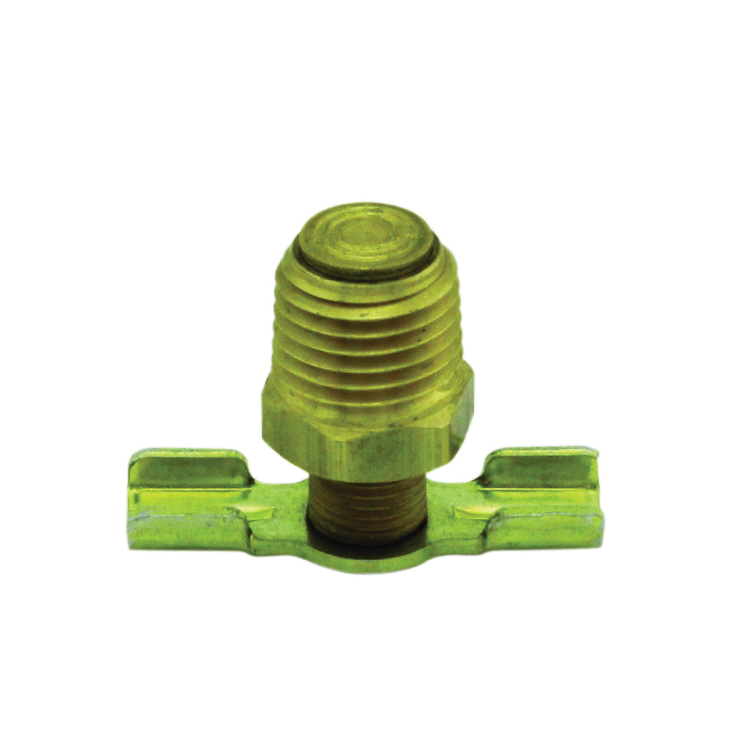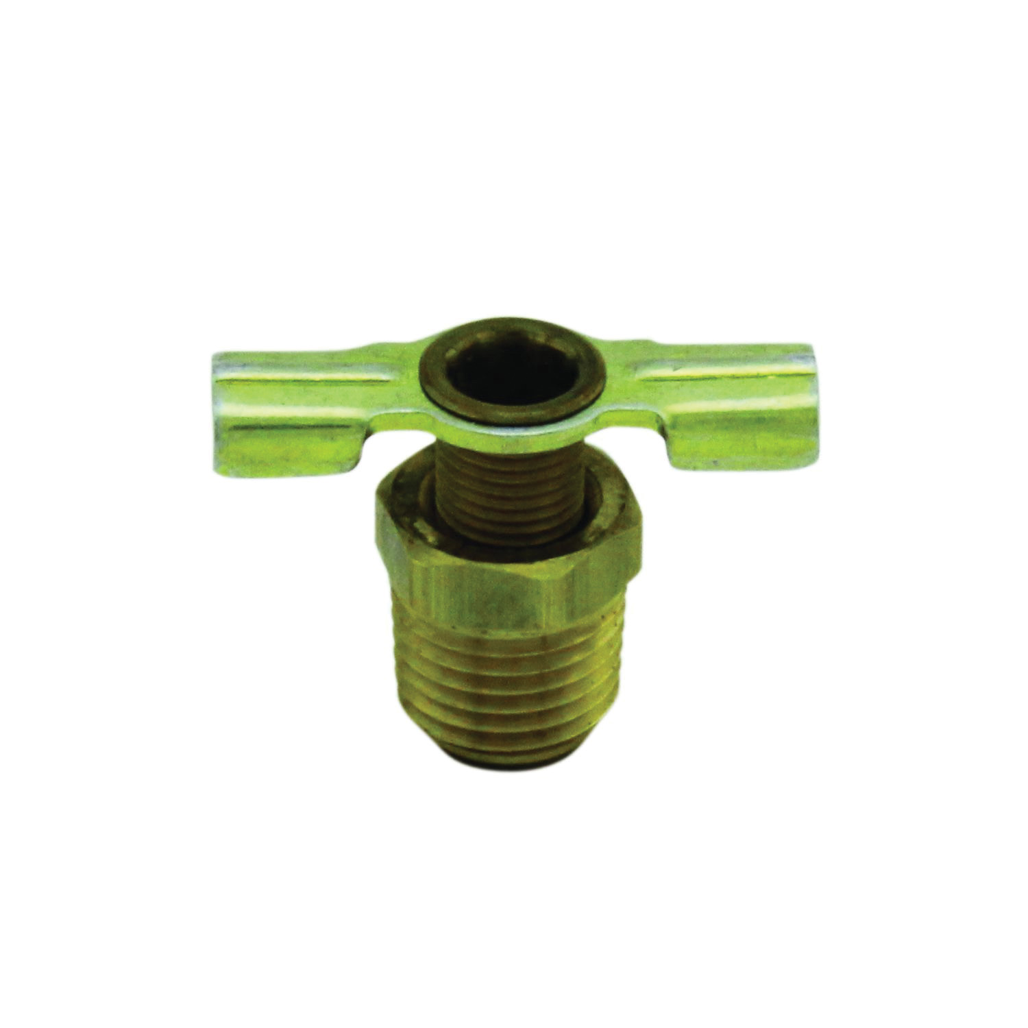 This 1/4 in NPT drain cocks are a replacement part for damaged drain cocks on compressor tanks. Turn handle to drain water, close drain cock when water is drained. Always release air from tanks before replacing drain cock. Drain cock body is brass, handle is steel.