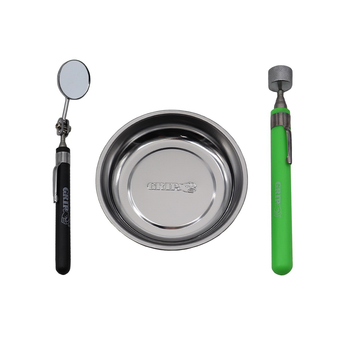 Grip 3-Piece Magnetic Tool Set, Stainless Steel, Includes: Magnetic Parts Tray, Telescopic Inspection Mirror and 5 lb Telescopic Magnetic Pick-Up Tool