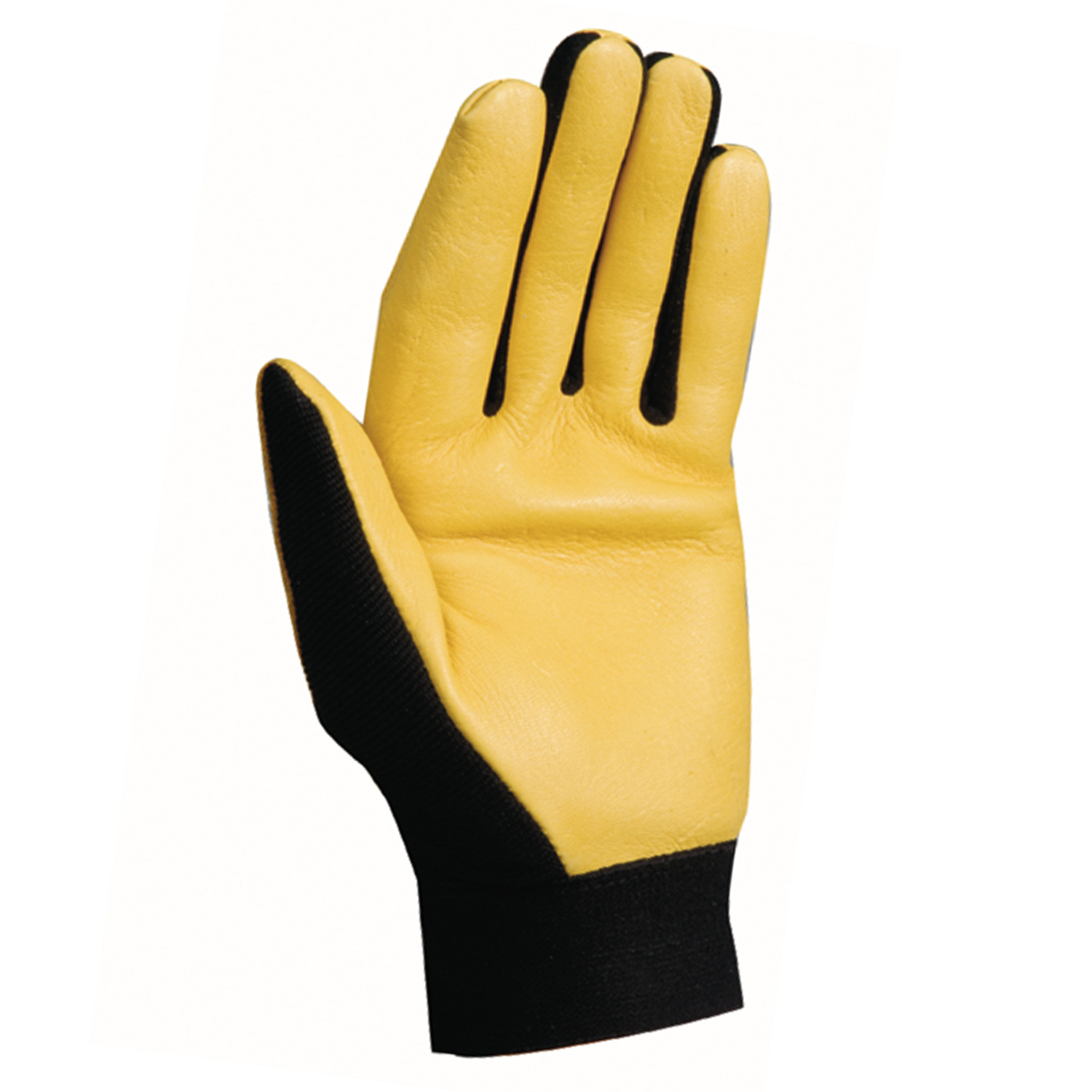 Wells Lamont Work Gloves, Women's Gender, Size: M, Deerskin Leather Palm, Spandex Back, Black/Gold/Yellow, Reinforced Thumb, Resists: Abrasion