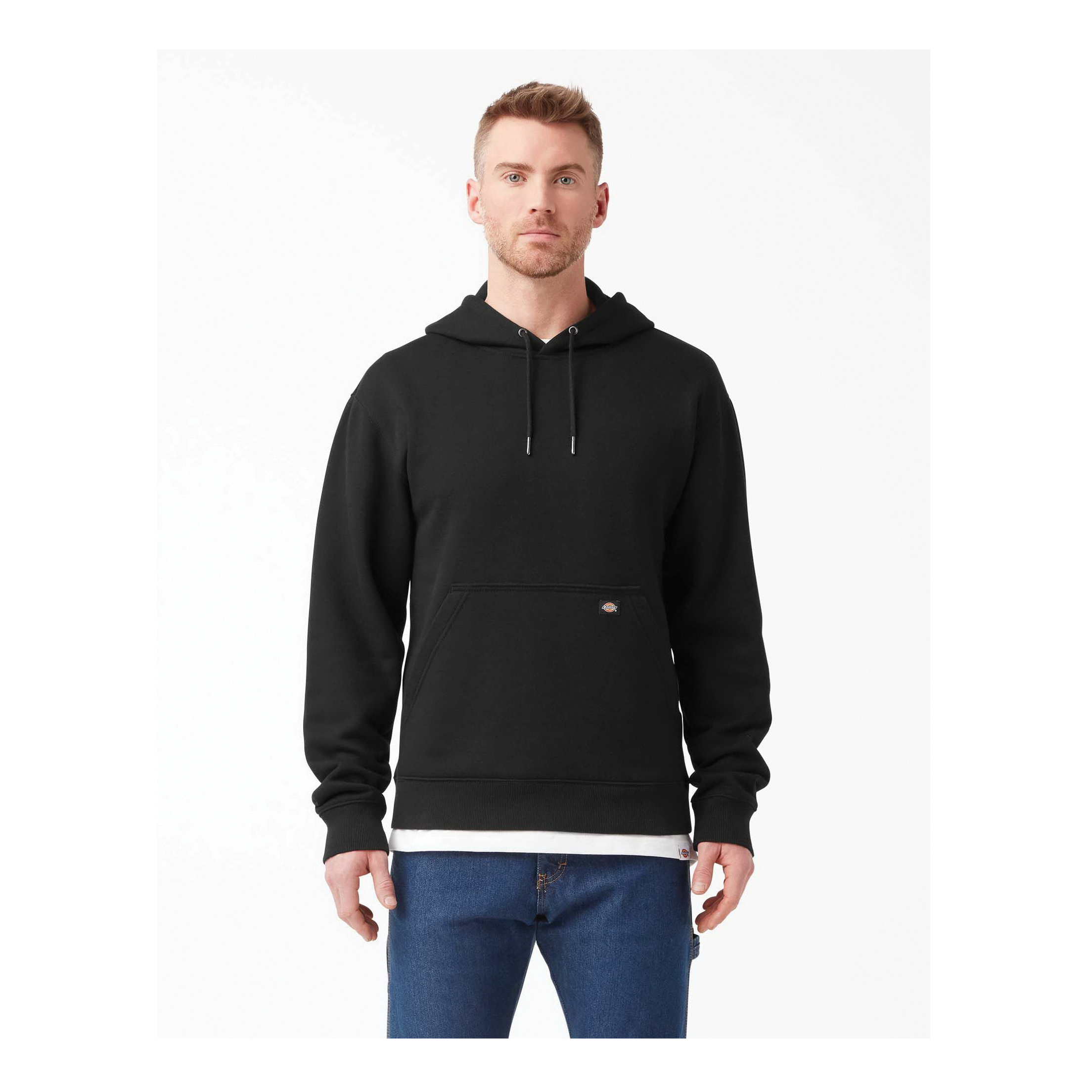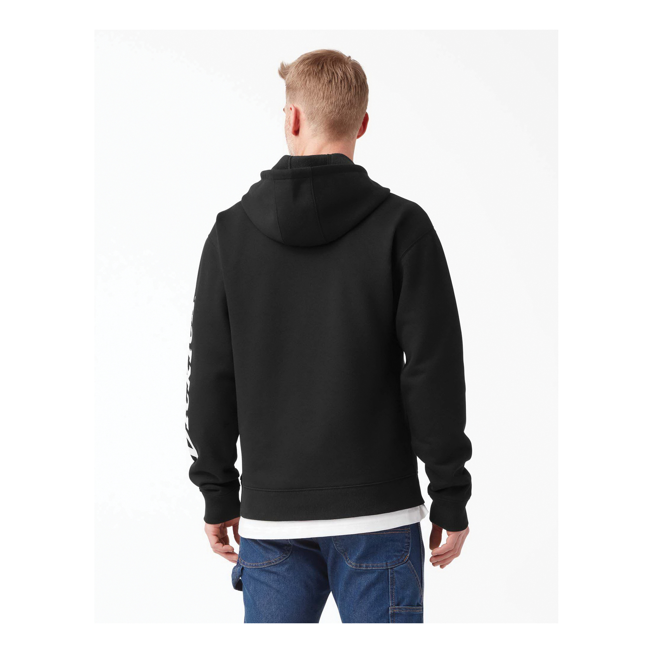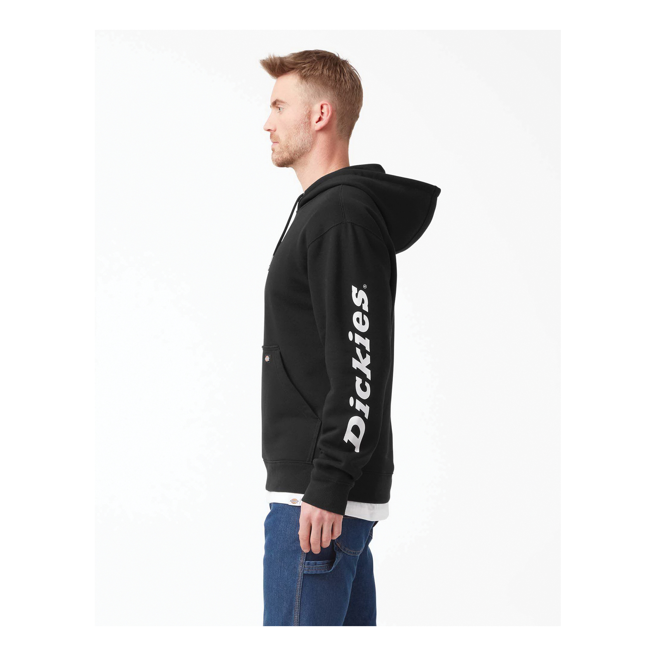 Dickies water repellent logo sleeve hoodie is fabricated from a soft fleece for a comfortable hand feel and primed with a durable water repellent finish, making this hoodie ready to be put to work in wet conditions. Equipped with a three-piece hood and rib-knit waist and cuffs, you'll be sure to keep the elements out while you perform in ultimate comfort. There is no shortage of layering potential with this hoodie, a true wardrobe staple that outlasts every season. The kangaroo pocket at front provides added utility to store small gear or to quickly warm your hands while on the go. Complete with a left sleeve Dickies graphic, there's no denying your devotion to protective and performance driven workwear.