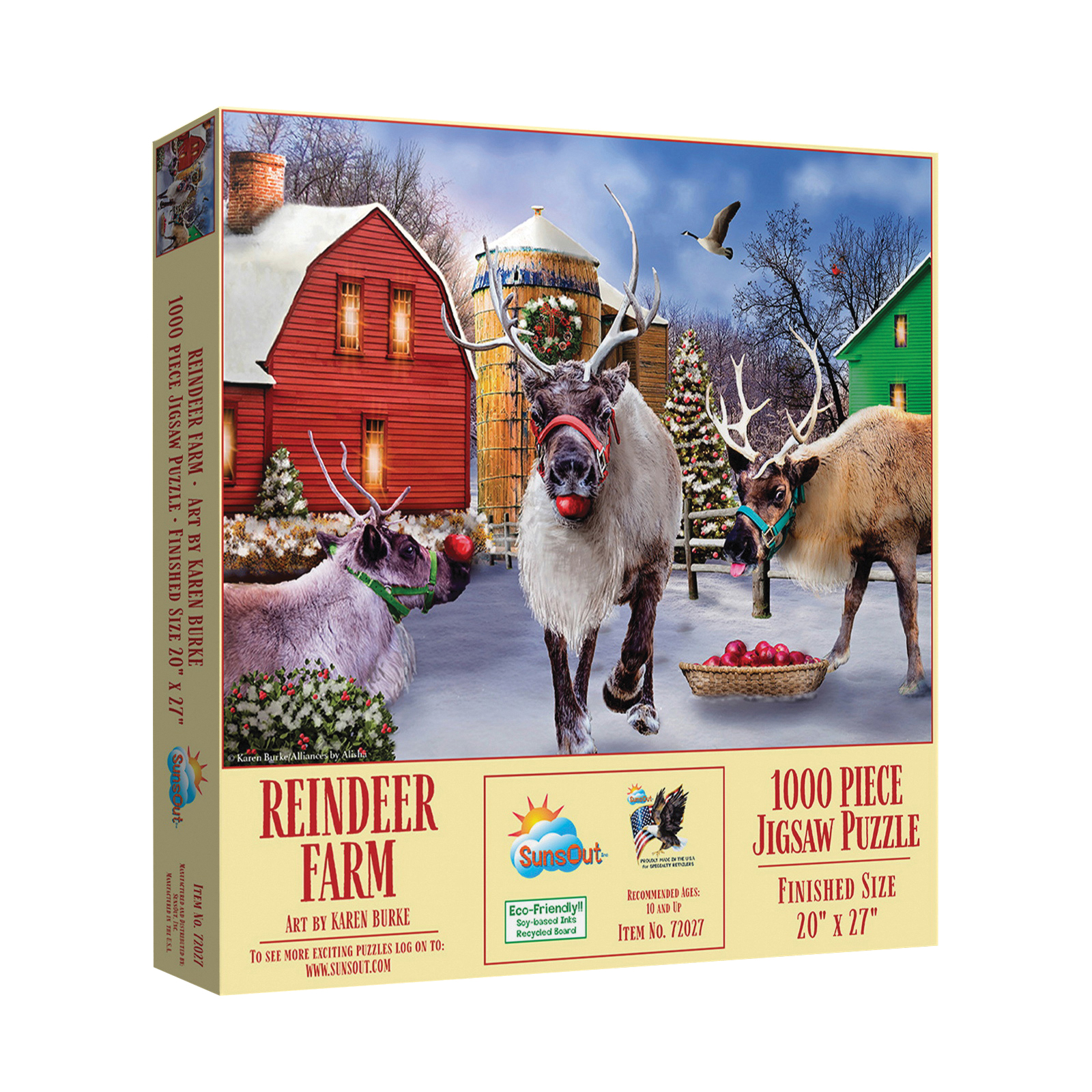 SunsOut Reindeer Farm Puzzle, Specifications: 1000-Pieces, Karen Burke Artist, Age Group: 10 years and Up, Cardboard, Dimensions: 20 in L x 27 in W