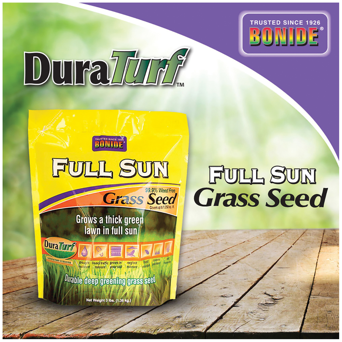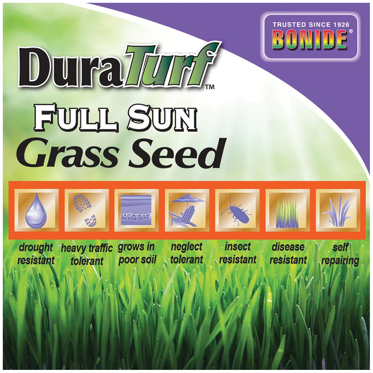 - Full Sun Grass Seed from Bonide grows a thick, green lawn even in full sun! This special seed mixture provides a self-repairing, drought tolerant, disease and insect-resistant lawn