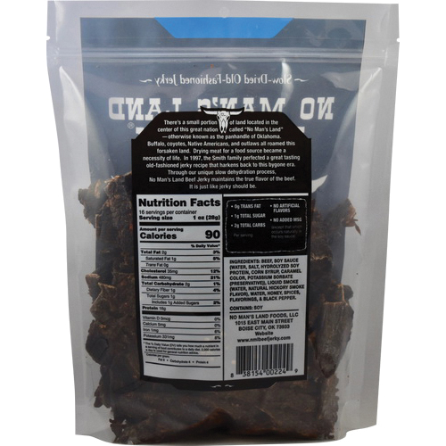 Our new line of jerky has the same great classic flavor with an added kick of cracked black pepper. Give your taste buds something they have been craving. No Man's Land Beef Jerky is USDA certified beef, you can be assured that you will be getting some of the excellent beef jerky that your money can buy.