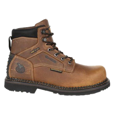 The Georgia Giant revamp steel toe internal met-guard waterproof work boot is engineered to provide incredible protection while being the most comfortable work boot on the market. The upper is crafted full grain SPR® leather. It's stronger than conventional leathers and provides great abrasion resistance. The removable comfort cover tongue protector provides protection while preventing pinch points a leather tongue creates. Dual functioning hardware gives you the option of hooks or eyelets. The XRD® material metatarsal guard is a soft internal metatarsal. It immediately hardens upon impact and returns to its original state once it is no longer impacted. The Ergo-fit steel toe cap is ergonomically designed to allow for more toe room. This boot meets the ASTM standards for protective metatarsal and electrical hazard safety footwear. The interior is packed with features. The Georgia waterproof system is assured to keep your feet dry and the removable AMP LT memory foam insole cradles your feet in comfort. A double ribbed tempered steel shank, cushioning EVA midsole and oil and slip-resistant polyurethane outsole round out the features on this waterproof metatarsal work boot.