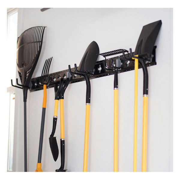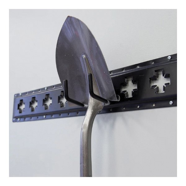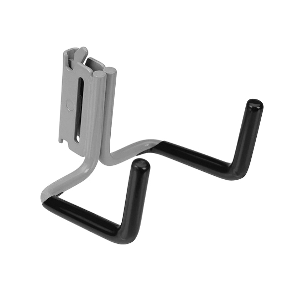 CargoSmart premium-coated dual arm tool hook works great to store long handled tools such as brooms, rakes and shovels. Rubber-coated finish protects cargo from scratches. Two-wire design helps keep cargo in place. Constructed with a spring-loaded fitting that clips into E-Track anchor points and CargoSmart's exclusive X-Track® system, to provide a safe and secure connection.