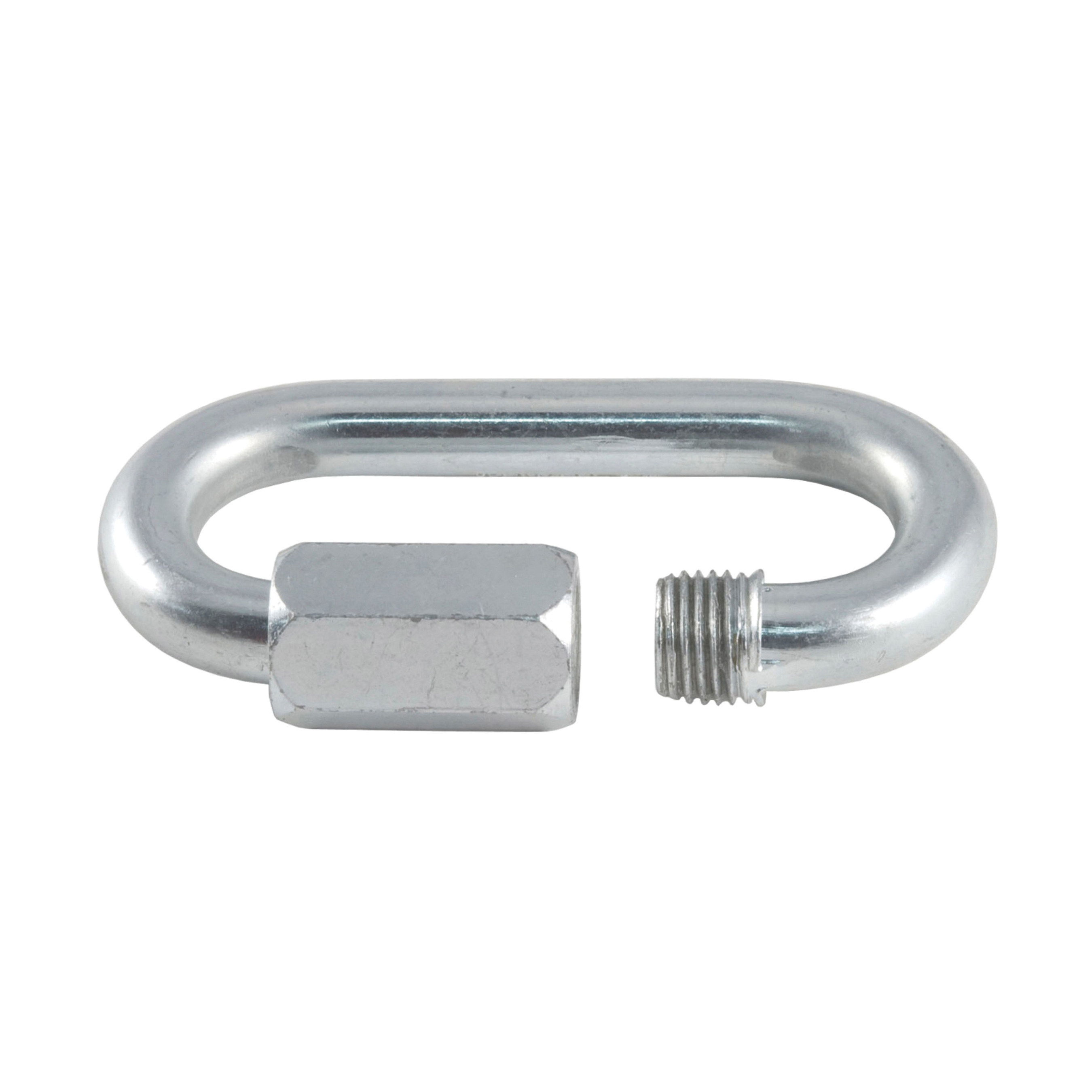 Curt quick links are an extremely versatile and reliable tool to help you get to your destination and go a little further once you get there. A quick-link is essentially a hook that is able to be fastened into a closed loop. This means it can be linked onto any d-ring or tie-down like a hook and just as easily secured like a seamless link in a chain. Curt quick links feature a special threaded end and barrel screw that allow them to be dependable and convenient. The threaded link requires no tools for tightening or loosening, though it does feature a hex shape that can accept a wrench for an extra tight hold. Quick link hooks can be used to connect rope, cable and chain and they are the ideal safety accessory to maximize the security of your safety chains and trailer. Their list of possible applications also goes well beyond towing, giving you a reliable connection for rock climbing, boating, camping, setting up a swing or hammock, leashing the dog, repairing chain, fastening down cargo and more. To make sure our quick links are fit to face the outdoors and all of your undertakings, we construct them from heat-treated steel and give them a zinc-plated finish for durability and rust-resistance. These Curt quick links feature a max load capacity of 1760 lb and features a 5/16 in Dia link.
