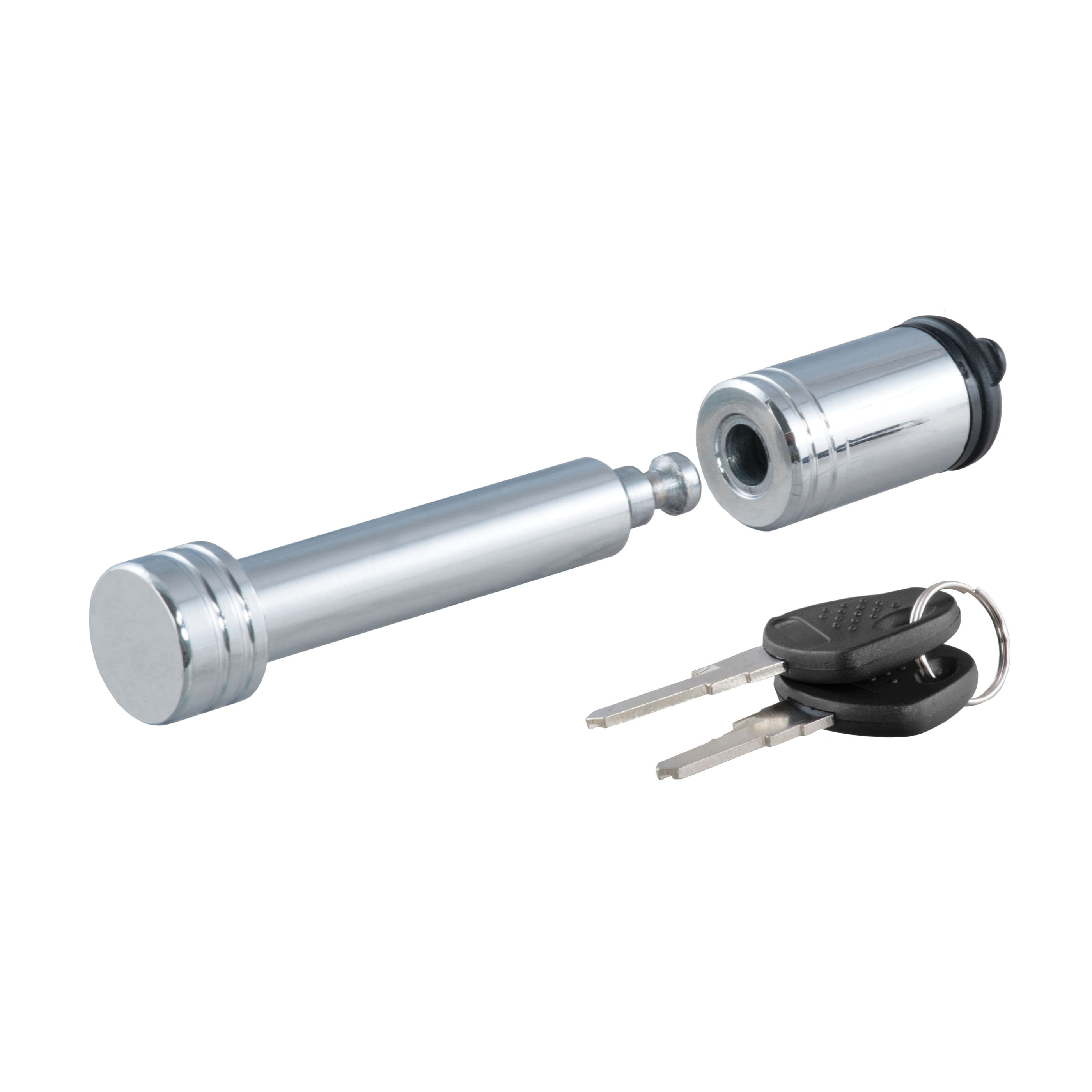 Make your tow vehicle and trailer more secure by keeping them locked up tight with a Curt hitch lock. Like a hitch pin and clip, a hitch lock is designed to insert into the fastener hole in the side of a receiver tube in order to hold a ball-mount or hitch-mounted accessory in place. While a Curt hitch pin does offer sufficient strength for keeping your ball-mount firmly attached, a Curt hitch lock goes one step further. Curt hitch locks allow you to lock your ball-mount into your trailer hitch, deterring theft and preventing anyone from detaching your trailer at the ball-mount and towing away your property without your permission. This Curt hitch lock features a barbell design and comes with a 5/8 in Dia pin to fit a 2 in receiver tube size. Curt barbell hitch locks are comprised of a pin with two end caps and a round locking mechanism. They are key operated and activate with a simple quarter turn. They also come with a watertight dust cap to keep out the elements and prevent corrosion. For the ultimate in towing security, a hitch lock and coupler lock used together will provide security at both the vehicle side and trailer side of your towing set up. For your boat, ATV or camper, keep your toys more secure with Curt hitch locks.
