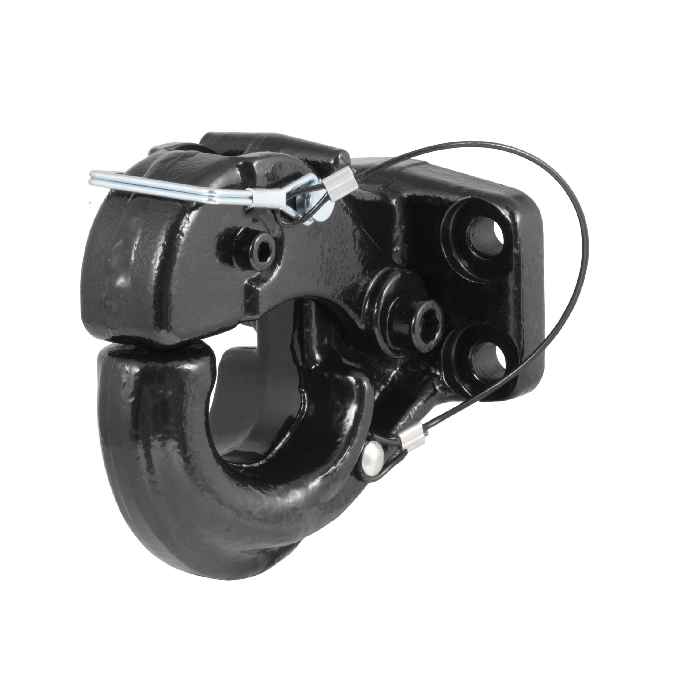 In agriculture, construction and even military applications, pintle hitches are the trusted product of specialized towing. They are notorious for their high weight capacity and simple design. The basic pintle hitch is essentially a hook and loop, with the hook attached to the vehicle and the loop mounted on the trailer. Because of their simple design, pintle hitches are able to have thicker metal construction and more secure coupling. Curt has a wide variety of pintle hitches and pintle-style products to give you a complete solution for your heavy-duty towing needs. Our pintle hooks are available in a receiver style, to fit a 2 x 2 in receiver hitch or in an adjustable style to mount onto an adjustable mounting plate. This heavy-duty pintle hook features a gross trailer weight capacity of 20,000 lbs. and a vertical load capacity of 4000 lbs (NOTE: Never exceed the lowest weight capacity of any towing component; i.e. the vehicle, hitch, trailer and more). It fits any lunette ring with a 2-1/2 in or 3 in inside eye diameter and comes with a safety pin for a secure latch. The heavyweight towing done with pintle hitches implies a certain amount of wear and tear on your towing equipment and to prepare for this, Curt uses a quality finish on all our pintle mounts, lunette eyes and combination pintle hitches. This pintle hook is coated in a tough black carbide powder coat finish to provide the ideal amount of rust and scratch resistance needed to face the heavy-duty towing you do every day.