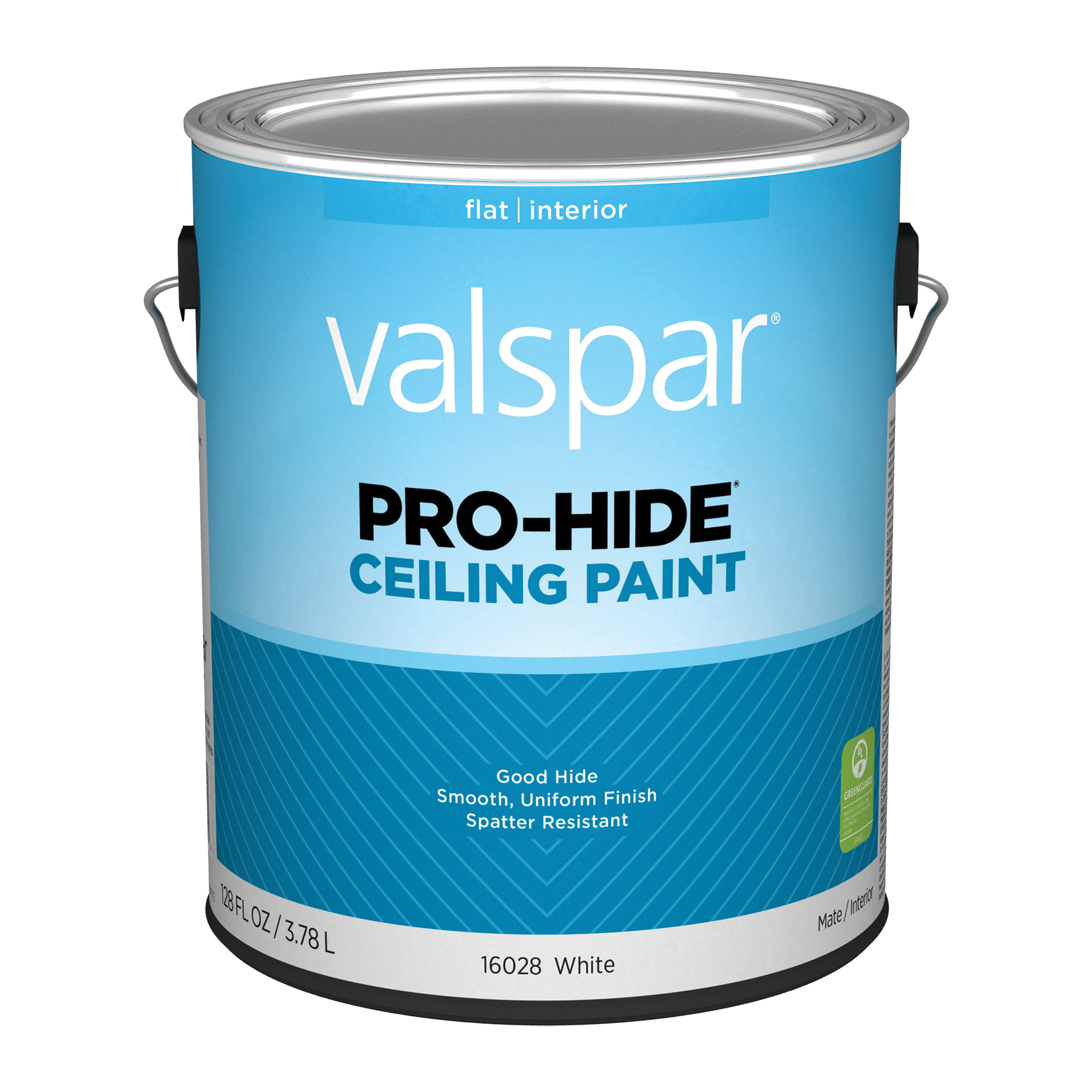 Valspar Pro-Hide 16028 028.0016028.007 Ceiling Paint, Flat, White, 1 gal, Metal Pail, Latex Base
