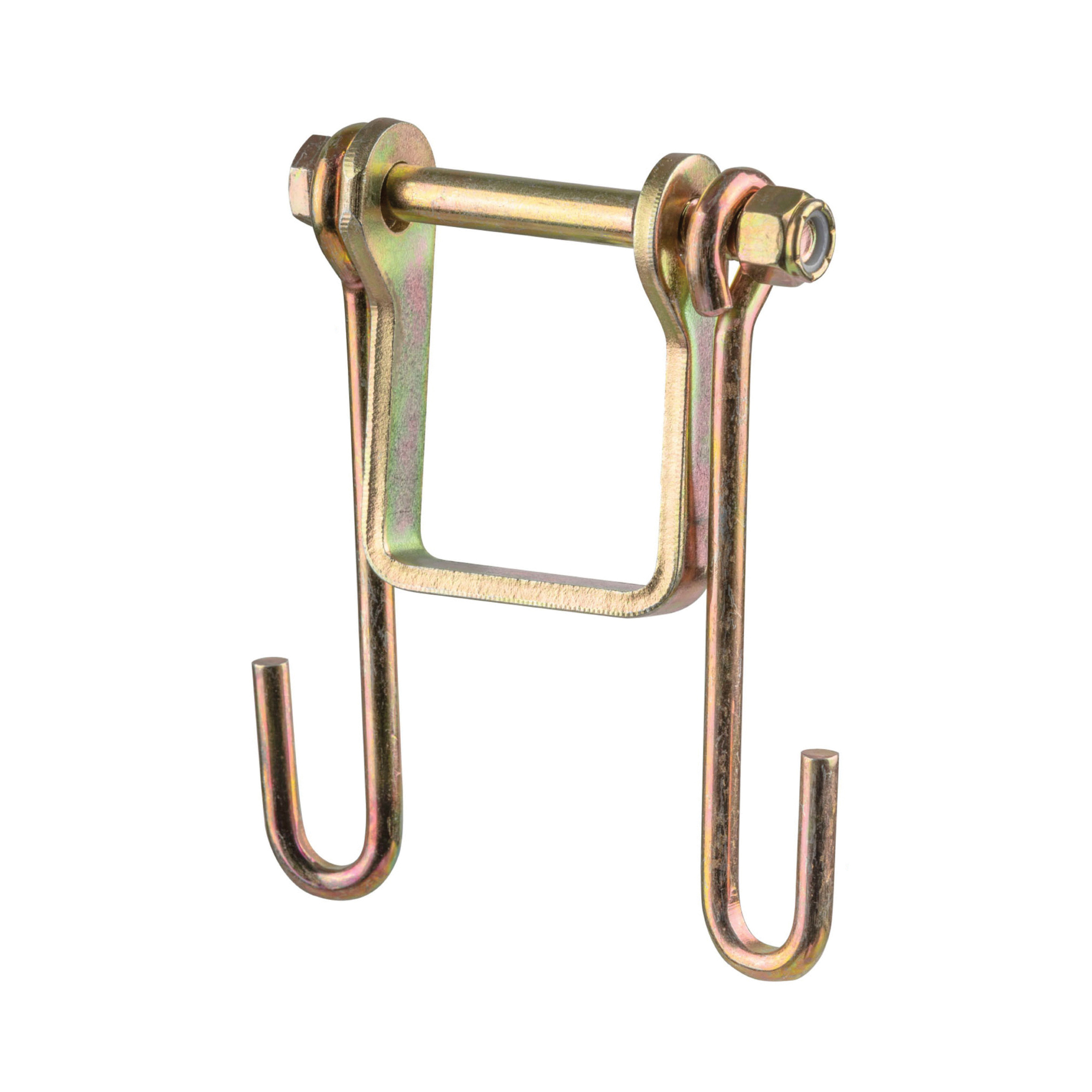 This simple bracket makes it easy-to keep your trailer safety chains from dragging on the ground while towing. The bracket securely bolts onto virtually any 2 in x 2 in shank and features two wire hooks that provide a convenient, intermediate hanger point for the safety chains. This keeps the chains protected from scraping on the ground and promotes longevity. Installing this safety chain bracket is easy and secure. It clamps onto virtually any standard 2 in ball mount shank, as long as the shank has 5/8 in of clearance between the mount and the hitch receiver. Unlike other chain hanger options, the bracket is designed to bolt into place, keeping it firmly mounted even after you uncouple your trailer no separate piece that can be dropped, lost or stolen. Curt trailer safety chain hanger hooks are constructed from steel and have a zinc finish for corrosion-resistance.