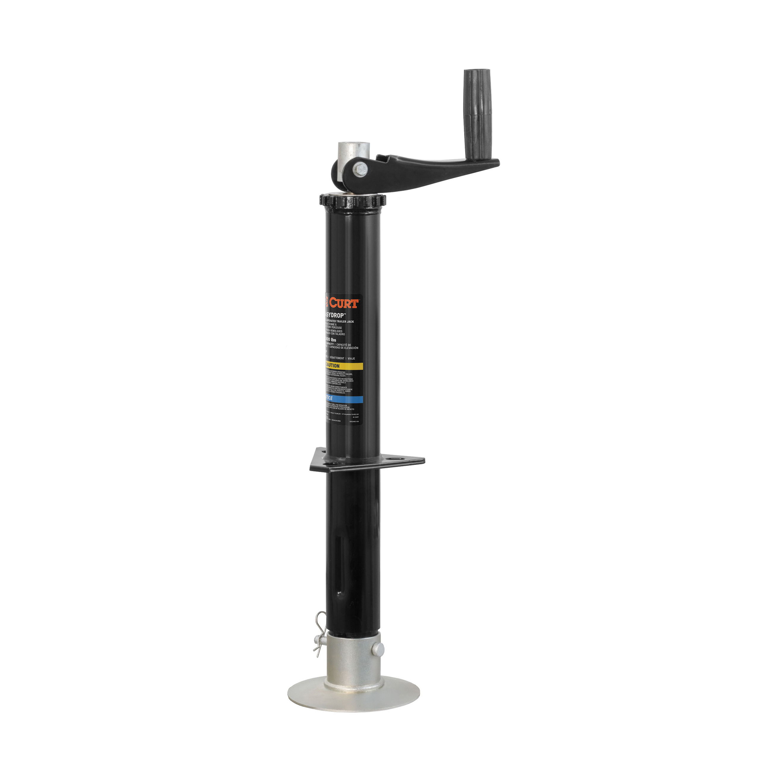 Can't decide between an automatic, power tongue jack or a manual jack, Why not choose both, The Quick Drop® tongue jack by Curt; gives you the excellent of both worlds. Uniquely designed with a 3/4 in hex nut at the top of the crank, you can conveniently use a power drill to raise and lower you're a frame trailer without the hassle and strain of manually cranking your jack. This is a great option when you're camping or parking your 5th wheel RV, travel trailer or cargo/utility trailer away from a power source or when you could just use a little break from operating the manual crank. But, not to worry, if your drill kicks the dust or is out of battery, you can still use the top-wind, ribbed crank handle to get the job done, so you're never stranded on the road without being able to lift or lower your a frame trailer. Now that's what we like to call a camping win, win. Complete with a 14 in vertical range, 2000 lb. load capacity, durable, powder-coated finish and footpad, this power or manual tongue jack is the economical, practical solution for your RV.