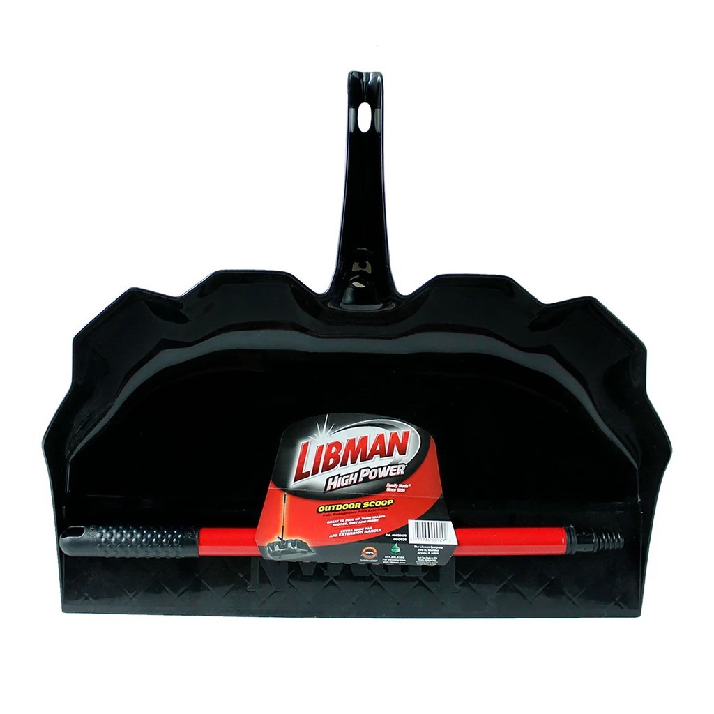 The oversized scoop and deep well easily pickup sticks, leaves, gravel and other industrial/warehouse and construction debris. Extendable handle provides leverage and avoids excessive bending over. Extra wide dust pan opening fits large brooms.