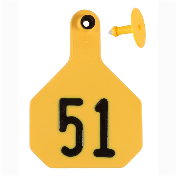 Y-Tex All American 7912051 Ear Tag, L, 2 in L, 3-1/4 in W, 51 to 75, Yellow