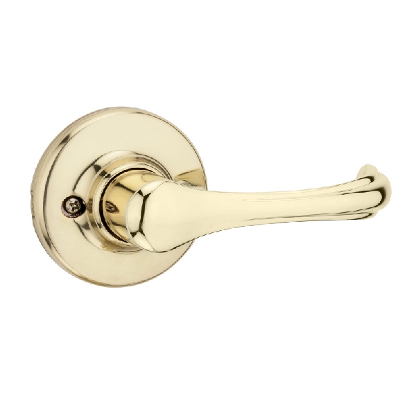 Kwikset Passage Lever, Non-Locking Lock, Polished Brass, Zinc, Residential Commercial/Residential, Door Handing: Reversible, 3 Grade, 5-Pin Cylinder, 3-3/4 in Lever Length, 6-Way Adjustable Latch, 2-1/8 in Cross Bore Diameter, 1-3/8 to 1-3/4 in Door Thickness, 1 in Edge Bore Diameter, 1 x 2-1/4 in Faceplate, 1/2 in Throw Length, Projection: 2-1/8 in, 2-1/4 in Strike, Full Lip Round Corner Strike, Rose/Base Dimensions: 2-5/8 in