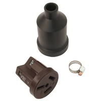 Crowfoot portable electrical receptacle, 50 A, 125/250 V. Hardened Bakelite crowfoot-design portable electrical receptacle with heavy rubber insulator. NEMA 10-50.