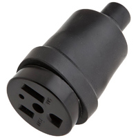 Pin-type portable electrical receptacle, 50 A, 250 V. Hardened Bakelite pin-type design portable electrical receptacle with heavy rubber insulator. NEMA 6-50.
