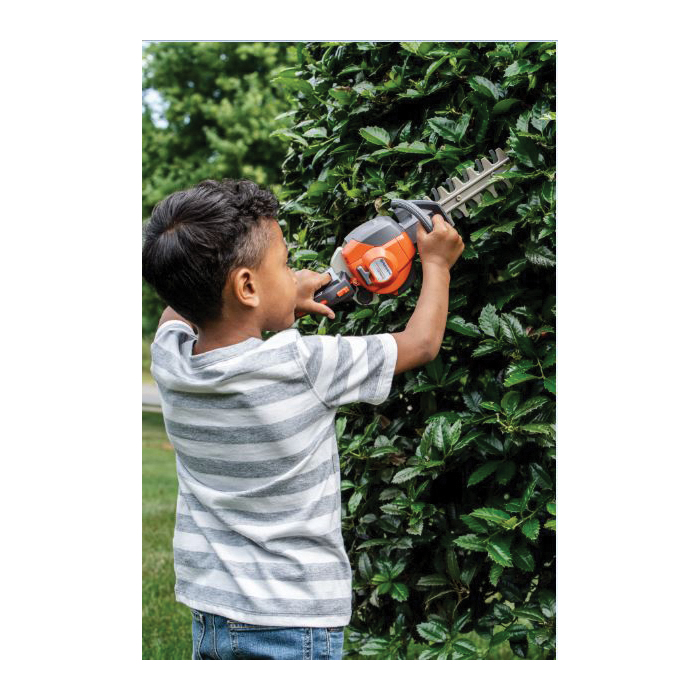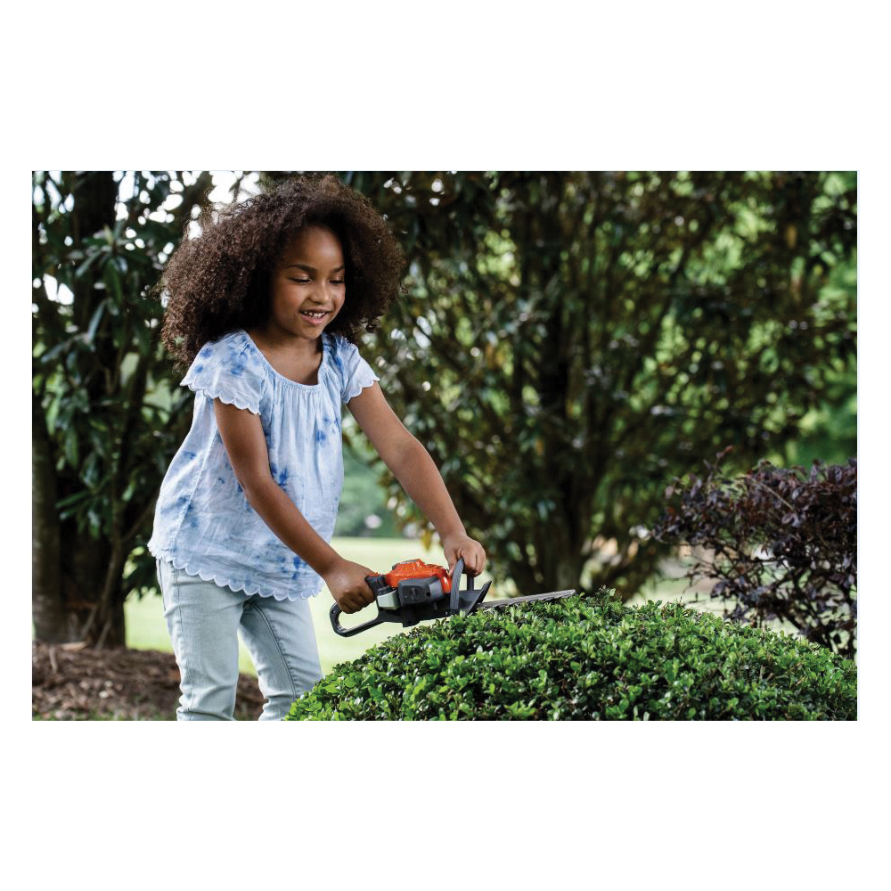 Toy looks just like a real Husqvarna 122HD45 hedge trimmer! This toy hedge trimmer is fun for children ages 3 and up. Makes hedge trimmer sounds. Cutters move back and forth to simulate cutting action when trigger is pulled. Young or old, everyone wants to perform like the pros. Husqvarna's new hedge trimmer is perfect for budding professionals. It's a fun and safe way for kids to be a part of the outdoor chores.