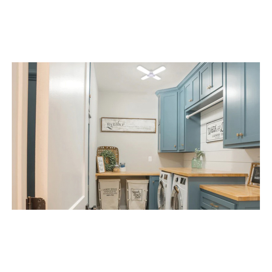 The Pinegreen Lighting four-panel LED universal folding light bulb emits 6000 Lumens, making it an ideal choice for illuminating your mudroom, basement or laundry room. With adjustable panels for convenient storage, it is designed to fit a standard E26 medium Edison base for effortless installation.
