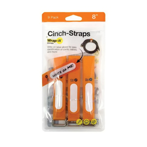 • Wrap-It Storage 209-08OR Cinch Strap, 3/4 in W, 8 in L, Metal/Nylon, Orange