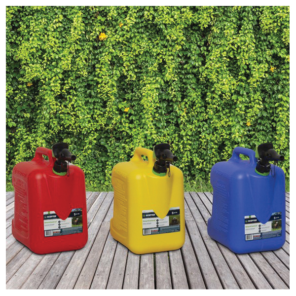 Scepter SmartControl™ fuel containers are the next generation of rugged gas cans that provide a clean, fast and hassle-free experience. Featuring a simple spout and flame mitigation device, this product eliminates frustration with an easy-to-use, durable design and an added layer of protection. The SmartControl™ fuel container's squeeze controlled flow rate makes filling everything from lawnmowers to recreational vehicles a cleaner, safer, better experience without spilling a drop. Smart. Rugged. Trusted. Scepter.