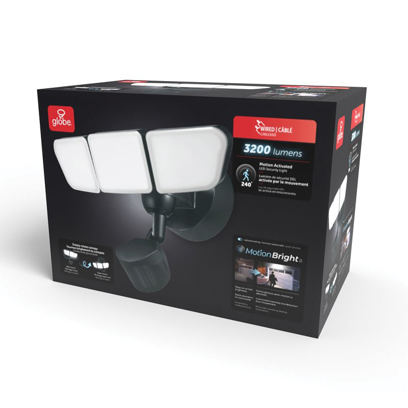 globe 17000207 Security Flood Light, LED Lamp, Bright White, 3200 Lumens, 4000 K Color Temp, Black Fixture