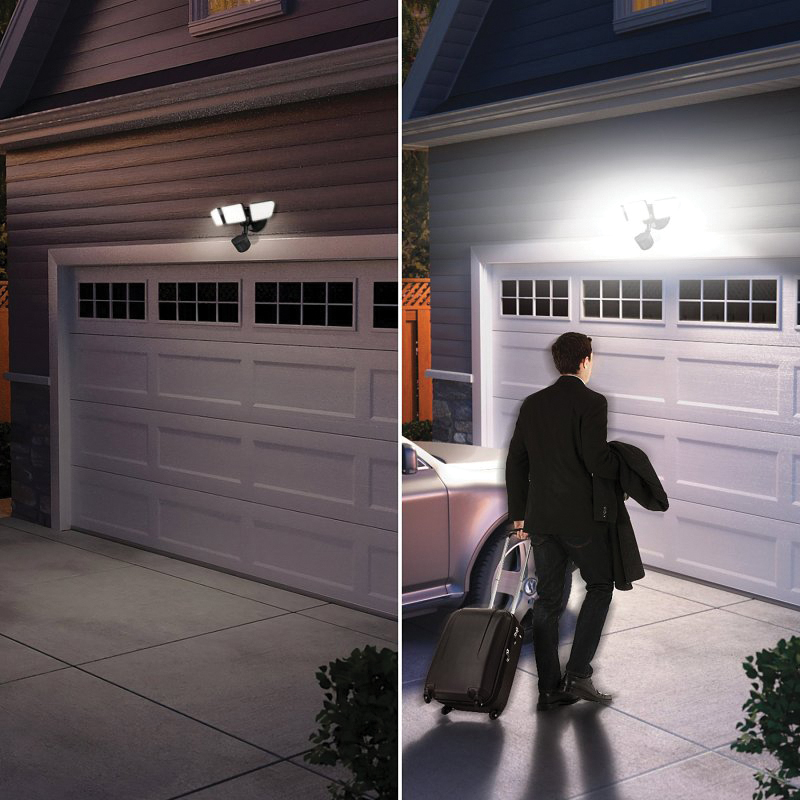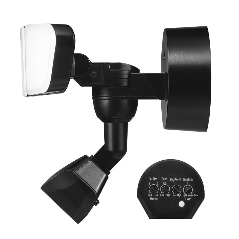 Upgrade your outdoor spaces with the motion activated flood light security light. Experience motion detection capabilities from all angles with a remarkable range of up to 50 ft or 15 m and a wide 240 deg detection zone. Blind spots be-gone. Automatically turning off after 1, 5 or 20 min gives you the flexibility to choose the duration that suits your needs. Equipped with the motion bright feature, you have constant low ambient lighting when no motion is detected and full brightness when motion is detected, saving energy while staying safe. The motion sensor has a sensing angle of 240 deg with a range of approximately 50 ft/15 m. Your security is never compromised and the powerful 3200 Lumens, daylight white 4000 K light disperses evenly for quick illumination. Installation is a breeze with the included dual-mount system, offering wall or eave mounting options, ensuring a ideal fit for your house's layout. Backed by a 2 year warranty.
