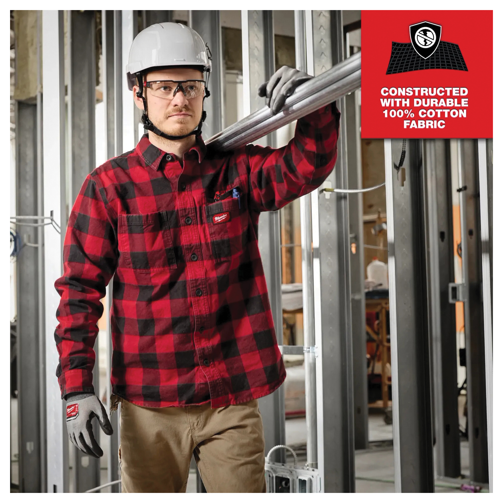 Part of the MILWAUKEE® Gridiron™ Collection, the Gridiron™ flannel shirt is built to survive. Constructed with 100% cotton, heavyweight fabric, this flannel shirt provides the durability and protection needed when on the jobsite. Its canvas-reinforced pockets, cuffs and double-stitched seaming ensure high wear and tear zones outlive the job. The three pocket design maximizes storage, allowing you to always have what you need, whether that be your keys, a screwdriver or a utility knife. Our MILWAUKEE® Gridiron™ products are developed in collaboration with feedback from users across the trades through continuous jobsite research.