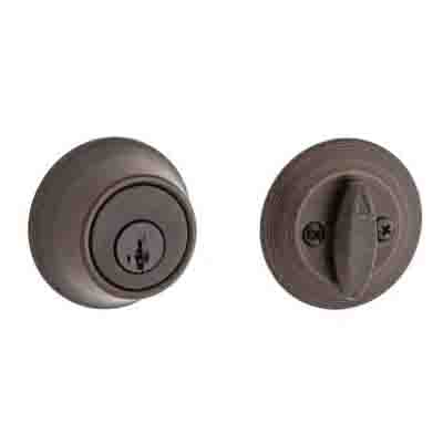 Kwikset Deadbolt, Design: Traditional, Security Grade: 3, Number of Cylinders: 1, Cylinder Type: 5-Pin, Keyway Type: KW1, Key Type: Keyed, Re-Key Technology: SmartKey, Strike Type: Full Lip Round Corner, Strike Size: 1 x 2-1/4 in, Backset Type: Adjustable, Backset Size: 2-3/8 to 2-3/4 in, Latch Type: Round Corner, Faceplate Size: 1 x 2-1/4 in, Throw Length: 1 in, Cross Bore Diameter: 2-1/8 in, Edge Bore Diameter: 1 in, Projection Size: 1-1/8 in, Door Thickness: 1-3/8 to 1-3/4 in, Interior Locking: Turn Piece, Door Handing: Reversible, Commercial/Residential: Residential, Zinc, Venetian Bronze, Dimensions: 2-1/2 in Dia, Includes: (2) Keys