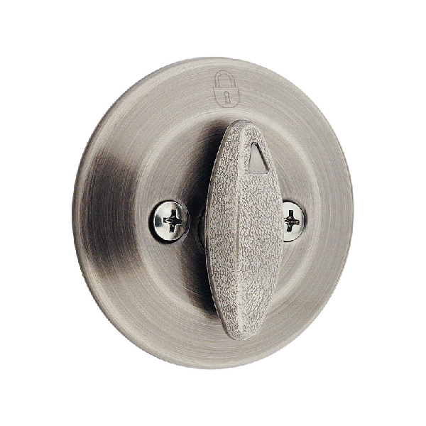 Kwikset 660 Deadbolt, Design: Traditional, Security Grade: 3, Number of Cylinders: 1, Cylinder Type: 5-Pin, Keyway Type: KW1, Key Type: Keyed, Re-Key Technology: SmartKey, Strike Type: Round Corner, Strike Size: 1 x 2-1/4 in, Backset Type: Adjustable, Backset Size: 2-3/8 to 2-3/4 in, Latch Type: Round Corner Adjustable, Faceplate Size: 1 x 2-1/4 in, Throw Length: 1 in, Cross Bore Diameter: 2-1/8 in, Edge Bore Diameter: 1 in, Projection Size: 1-1/16 in Exterior, 27/32 in Interior, Door Thickness: 1-3/8 to 1-3/4 in, Door Handing: Reversible, Commercial/Residential: Residential, Zinc, Satin Nickel, Dimensions: 2-7/16 in H, Includes: (2) Keys