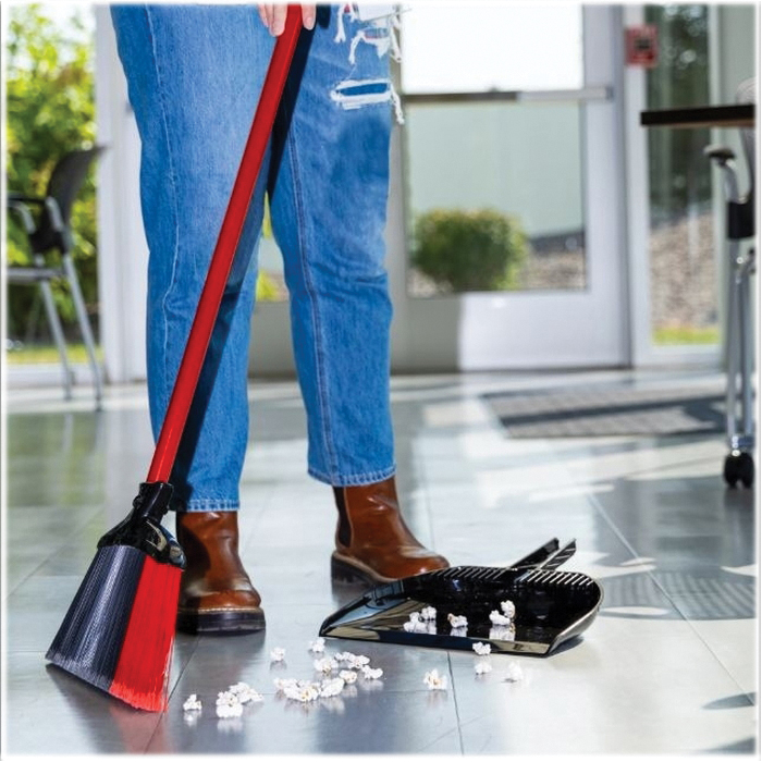 - Rigid plastic teeth in dustpan to easily remove dust and hair from broom fibers
