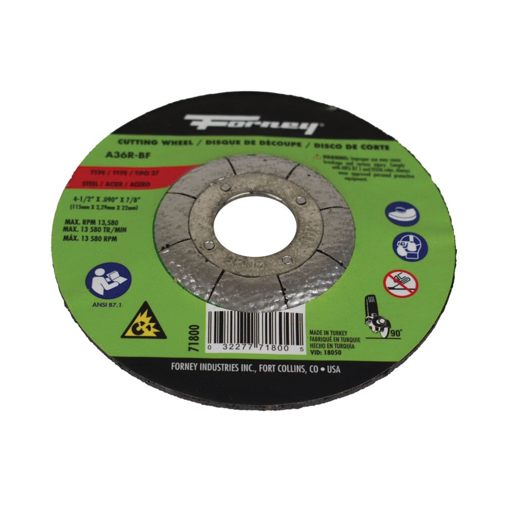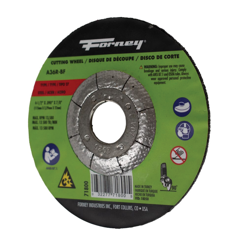 Forney 71800 Cut-Off Wheel, 4-1/2 in Dia, 3/32 in Thick, 7/8 in Arbor, 36 Grit, Medium, Aluminum Oxide Abrasive