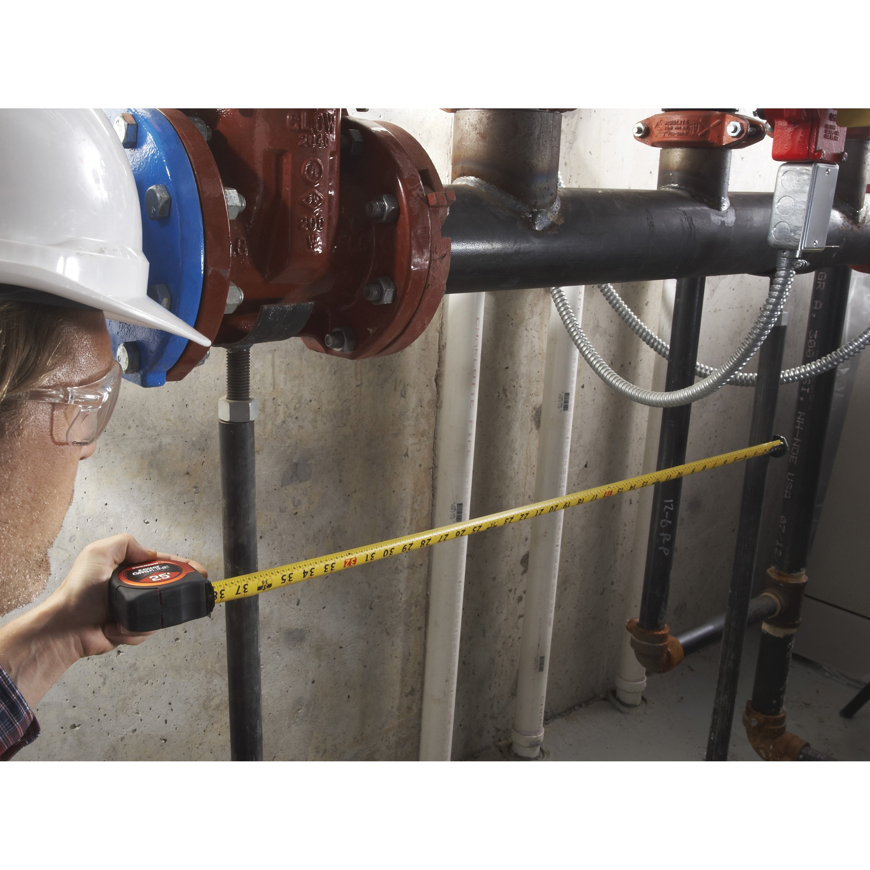 For accurate measurements on PVC, conduit and pipe up to 2 in Dia use a SAVAGE™ GripLine™ tape. The tape measure features large numbers, 1-1/16 in wide blade and an exclusive magnetic tip. The large numbers are displayed on top and bottom for increased user readability. The magnetic tip can be used to attach to a metal surface such as a metal beam or window frame. The tape measure can clip onto a carpenter, contractor or plumber's tool belt and is compact enough to easily fit into a tool box.