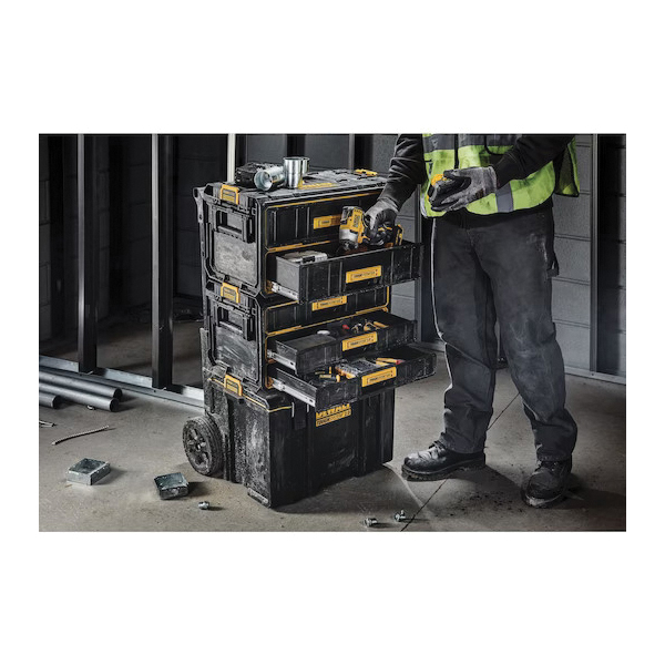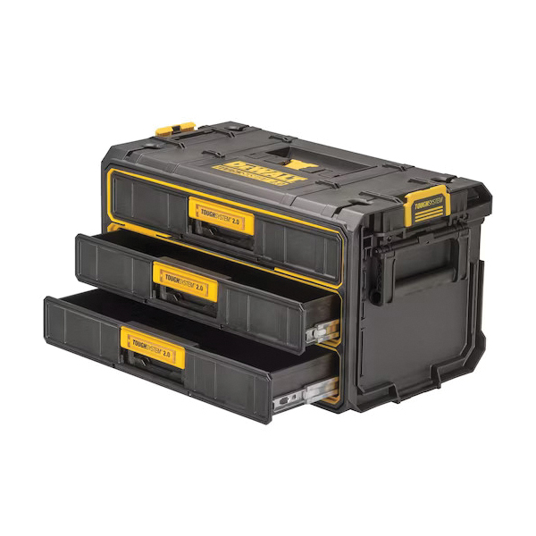 Transport small tools and accessories in the DeWALT® TOUGHSYSTEM® 2.0 3 drawer toolbox. Featuring 3 quick close drawers and ball bearing metal slides to allow for smooth operation, this unit provides convenient access to your essentials on the jobsite. Add to your customizable DeWALT® portable storage solution by stacking this durable unit to any existing DeWALT® TOUGHSYSTEM® module.