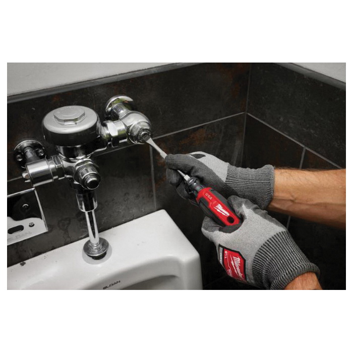 Our Milwaukee® cushion grip screwdrivers (USA) are manufactured to give the professional the excellent-fitting screwdriver with max grip. Our screwdriver tips are custom machined to deliver a precise fit and reduce stripping during demanding fastening applications. For added confidence, the tips are laser etched to increase the gripping surface. Manufactured with high-strength boron-infused steel for increased hardness, our screwdrivers stand-up to the demands of the site with ultimate durability and life. Providing increased versatility, select screwdrivers include a wrench ready bolster for added torque and a knurled shank for precision control. Quick identification markings on the handle make it easy to identify screwdriver tip size and type, including Phillips, cabinet, ECX, slotted and square. The demolition screwdrivers also include a hammer-ready strike cap. Our Milwaukee® cushion grip screwdrivers (USA) are made in the USA with excellent-in-class manufacturing technology and USA-sourced materials all backed by a complete lifetime warranty.