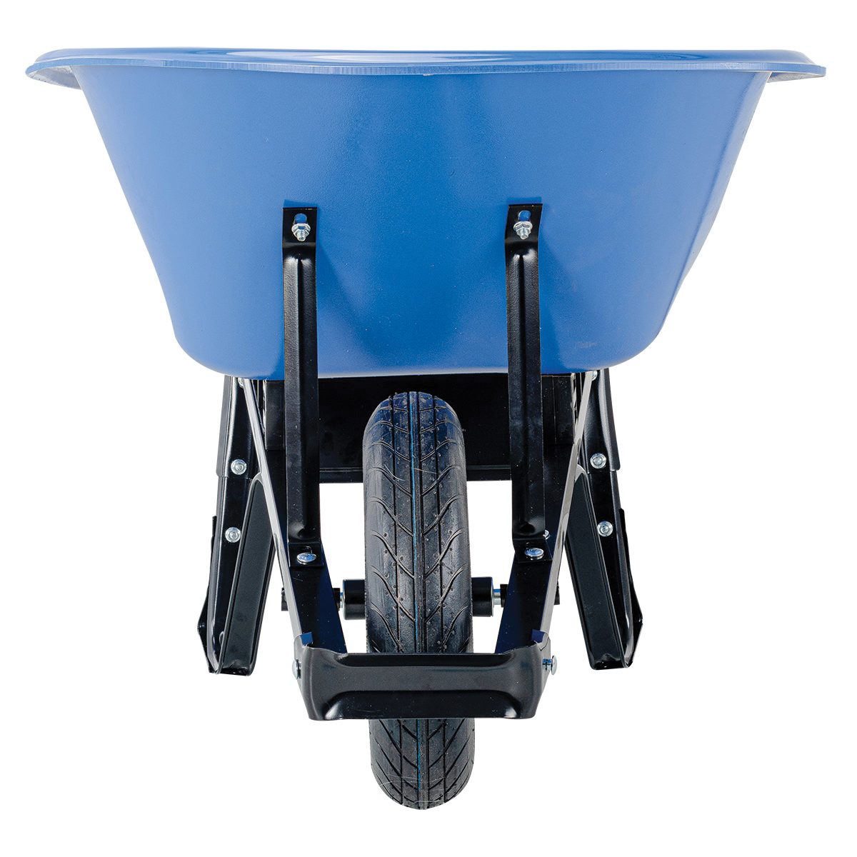 The wheelbarrow includes high-density polyethylene tray, steel handles, 16 in pneumatic tire. The wheelbarrow has part SKUs 7463797, 7463789 and 7463805.